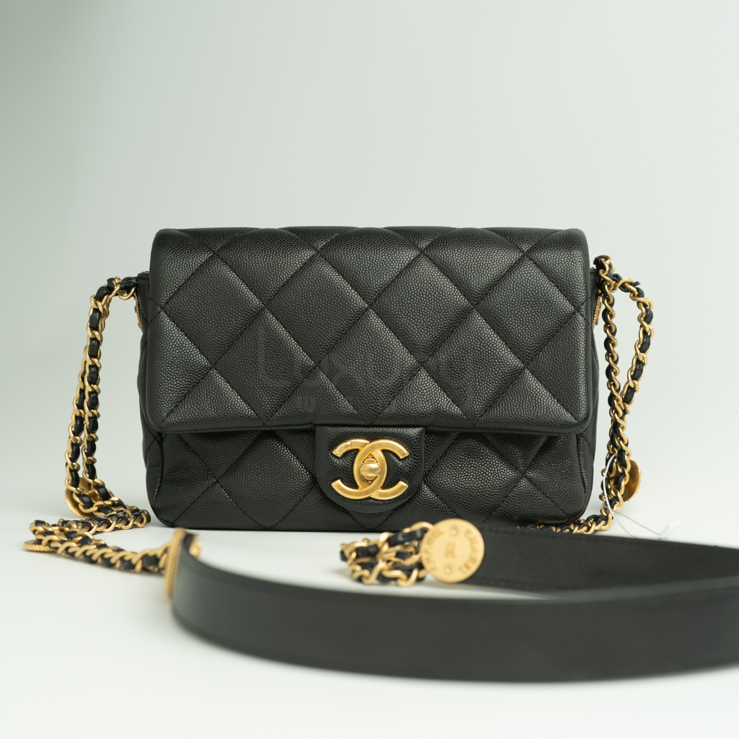 Túi Chanel 22A Small Flap Bag Black Grained Shiny Calfskin